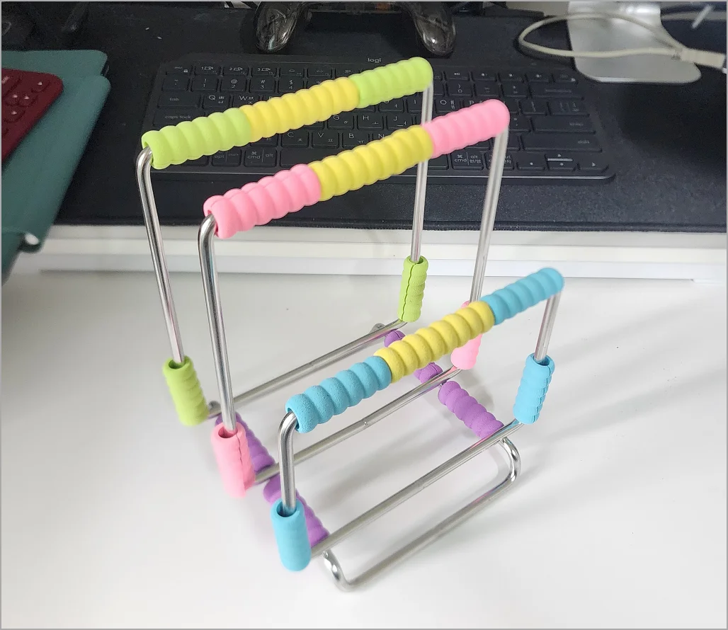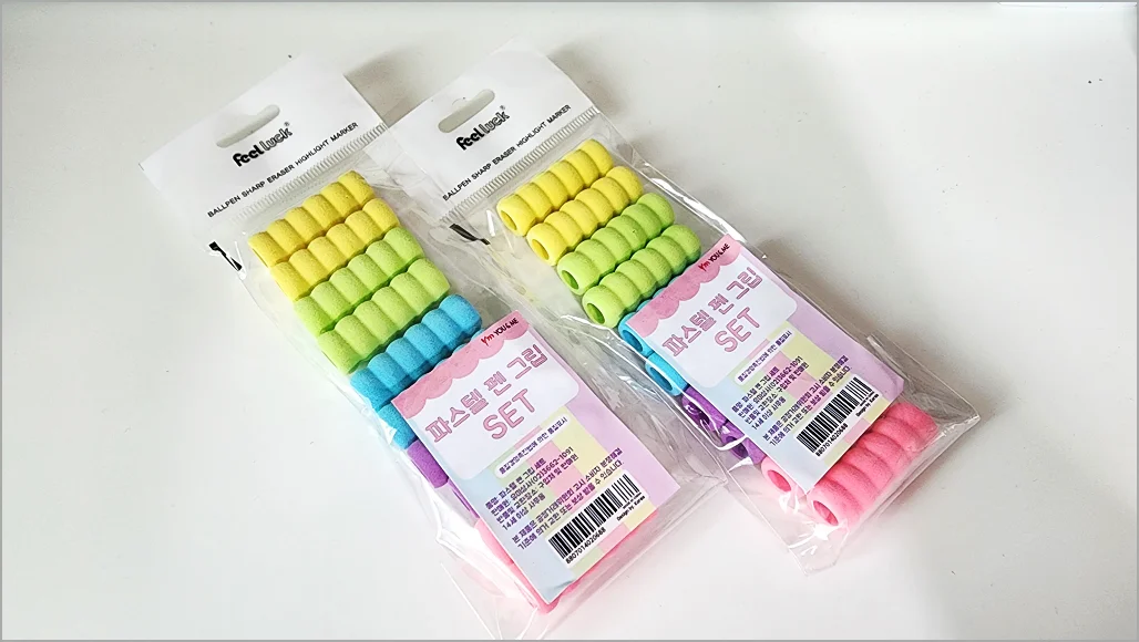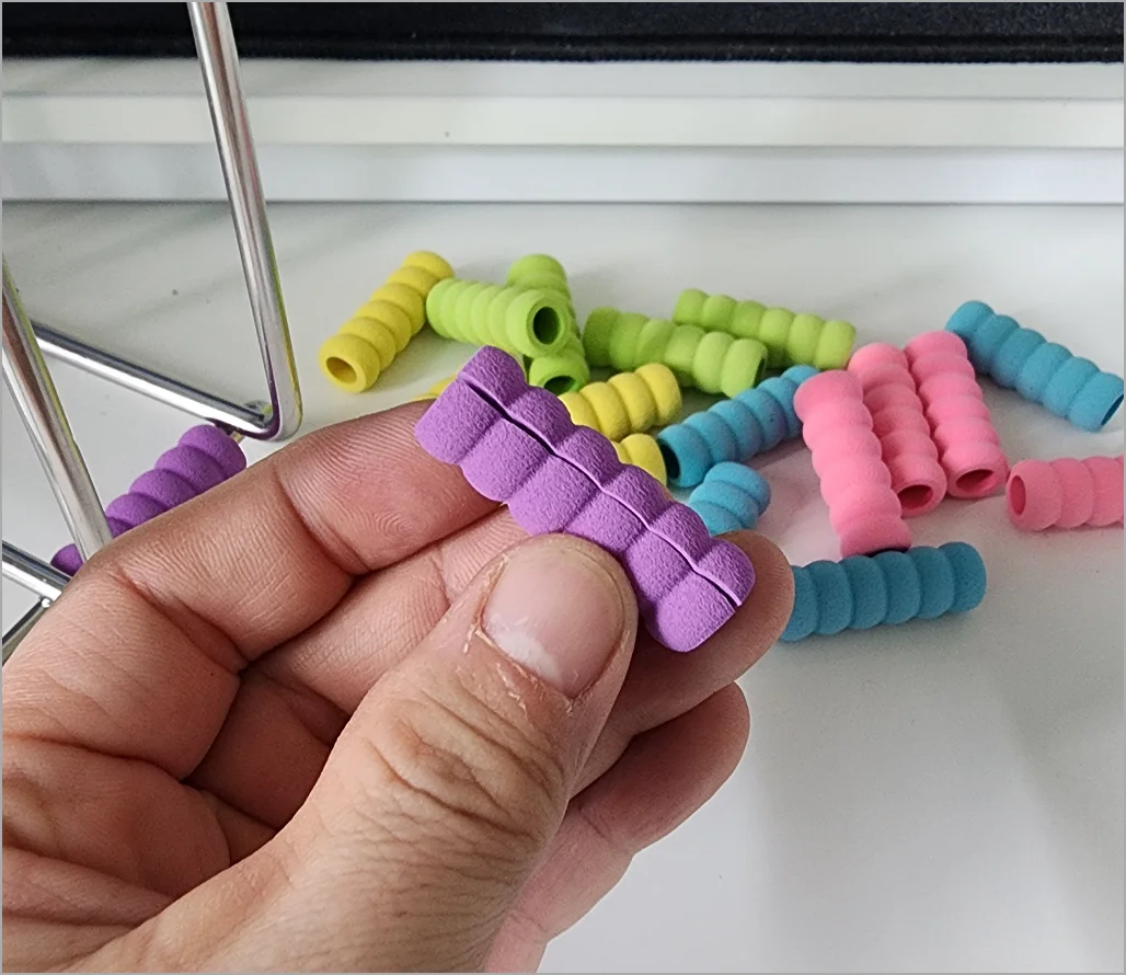 스테인리스 도마꽂이는 원래 목적과 다르게 태블릿 또는 키보드를 보관할 수 있는데요. 이때 충격과 스크레치를 막기 위해 사용된 것이 '펜 그립'입니다. 그런데 도마꽂이처럼 다이소 펜 그립을 찾기가 쉽지 않았습니다. 차선책으로 동네 생활용품점에서 펜 그립 확인! 가격은 10개에 1천 원!!! 저는 2팩 구매했습니다.